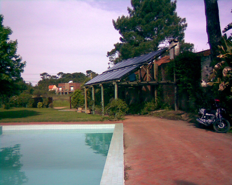 El sistema solar calienta la piscina abierta en verano y la calefacción de la casa en invierno.